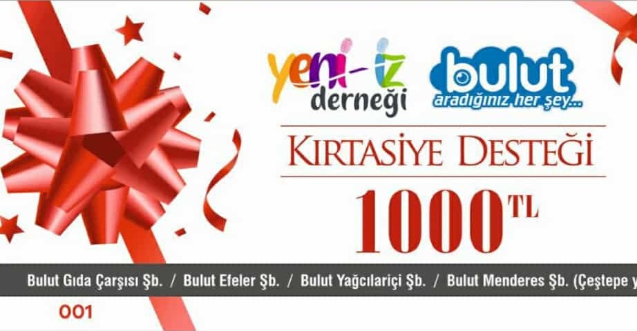 “Yeni-İz Derneği olarak eğitim yolunda çocuklarımızın yanında olmaya devam ediyoruz. 2025-2026 Eğitim-Öğretim yılı için ihtiyaç sahibi ailelerimize 1.000 TL değerinde kırtasiye desteği veriyoruz. Bu destek kartı yalnızca Bulut AVM şubelerinde geçerli olacak ve çocuklarımızın ihtiyaç duyduğu defter, kalem, çanta, boya ve tüm kırtasiye ürünleri için kullanılabilecektir.