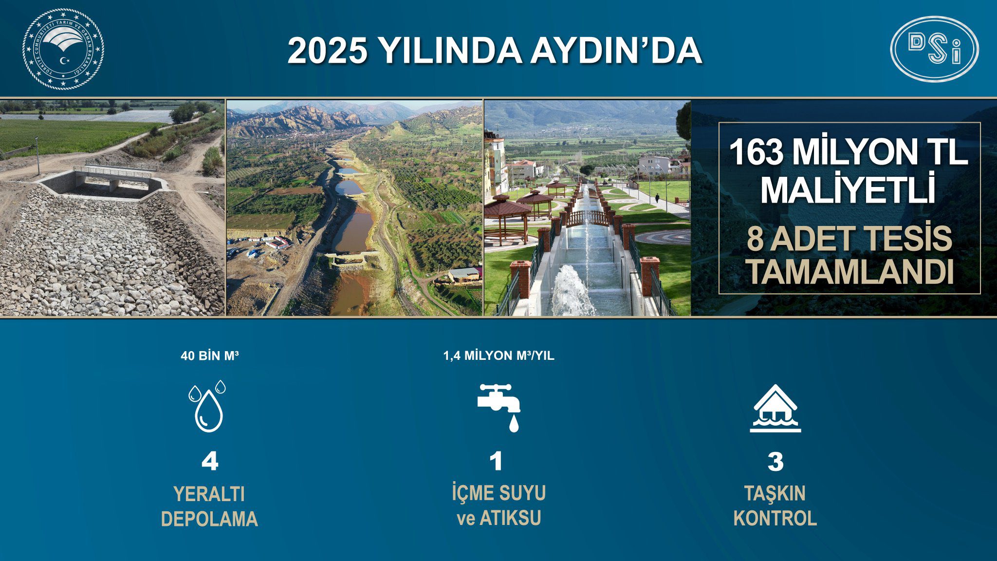 Devlet Su İşleri (DSİ) Genel Müdürü Mehmet Akif Balta, Aydın ilinde 2025 yılı içerisinde tamamlanan projelerin bilançosunu paylaştı. Yapılan açıklamaya göre, toplam 163 milyon TL maliyetle 8 adet tesis Aydın halkının hizmetine sunuldu.
