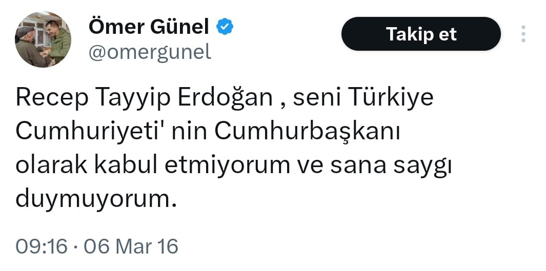 İhbar Aydın Araştırma Masası olarak ulaştığımız yeni bir tweet ise, Başkan Ömer Günel’in Kuşadası Belediye Başkan aday adaylığı sürecinde Recep Tayyip Erdoğan’a yönelik hakaret vari paylaşımlarının sürdüğünü göstermekte.