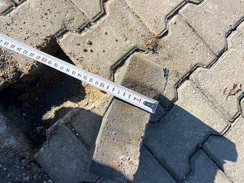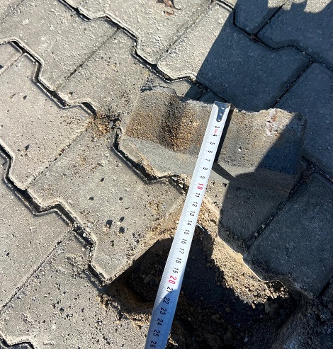 Fotoğraflarda şartnameye aykırı şekilde 8 santimetre olma zorunluluğu olan parke taşının 7 santimetre olduğu açıkça görülüyor. (NOT: İhbar Hattımıza gelen üstteki fotoğraflar haricinde, hiçbir parke taşı yerinden sökülmemiş, kamu malına ise asla zarar verilmemiştir.)