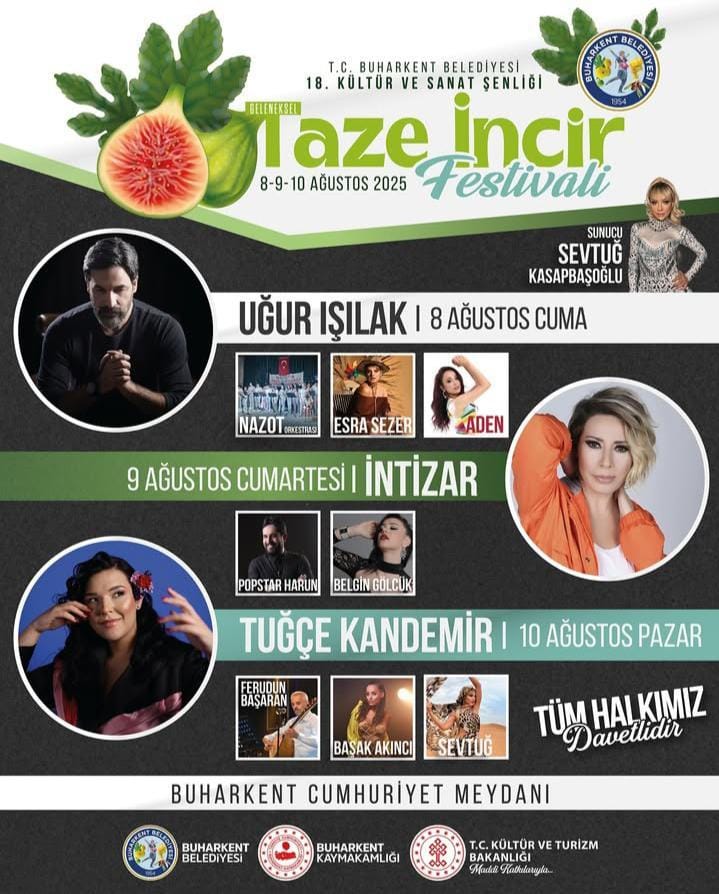 Buharkent Belediyesi’nin geleneksel hale getirdiği ve bu yıl 18.’si düzenlenecek olan Taze İncir Festivali, 8-9-10 Ağustos 2025 tarihlerinde sanat ve müzik dolu üç günle Buharkent Cumhuriyet Meydanı’nda gerçekleşecek.