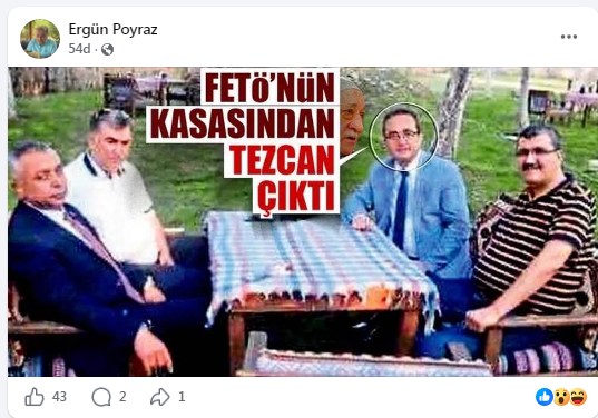 Bülent Tezcan’ın FETÖ imamlarıyla birlikte olan fotoğrafları birçok basın ve medya kuruluşunda daha önce yayınlanmıştı. Yazar Poyraz bugün ise, Bülent Tezcan’ın FETÖ imamlarıyla olan fotoğrafını sosyal medya hesabından yayınladı.